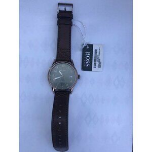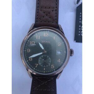 Boss Hugo Boss Textured-bezel watch with brown Italian leather strap.