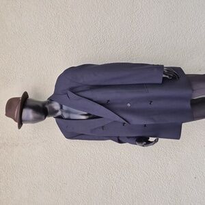 Step up your wardrobe with this elegant navy double-breasted blazer,
