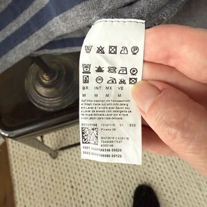 BOSS Hugo Boss gray quarter zip 100% cotton pullover sweater with dark blue striping at the waist, inside the collar and in the lining of the hidden placket. Brand tab at the hip. Tonal striping at the shoulders. Laying flat measures 27 inches shoulder to hem and 20 inches armpit to armpit.Please note that in our opinion this sweater is more fitted. That is our experience with this brand. The knit is tight and smooth for a refined look. Please note that I have two sweaters just like this also listed, one in black and one in midnight blue. I’m happy to bundle. Let me know if you have any questions.
