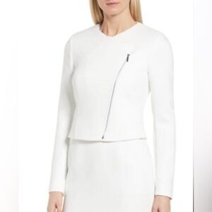 Boss Hugo Boss Womens Juleama Compact Twill Asymmetrical Zip Jacket Sz 14