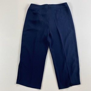 Boss Hugo Cropped Women Telareama Button Accent Navy Blue Work Dress Pants Sz 18