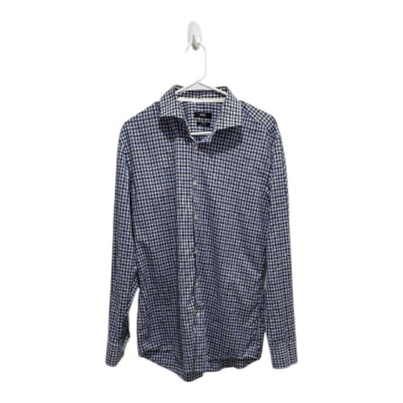 Boss Hugo Mens Shirt 42 16.5 Button Down Regular Fit White Blue Checkered Plaid