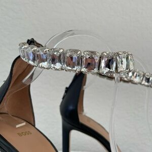 Boss Janet Rhinestone Ankle Strap Heels – Luxe Nappa Leather, Bridal Elegance