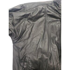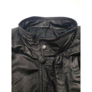 Boss Leather Black Leather Bomber Motorcycle Full Zip Button Up Jacket Size ?
