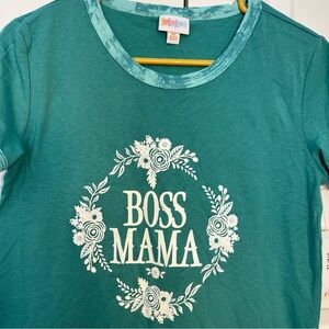 Stylish green tee with 'Boss Mama' graphic. Floral design adds charm. Perfect for casual wear.
