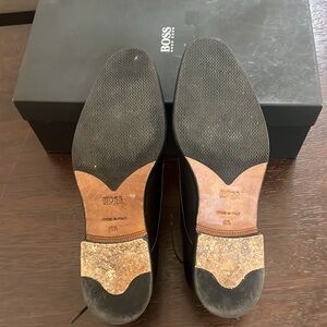 Elegant black leather Oxfords by Boss. Sleek design with lace-up closure. Ideal for formal occasions.