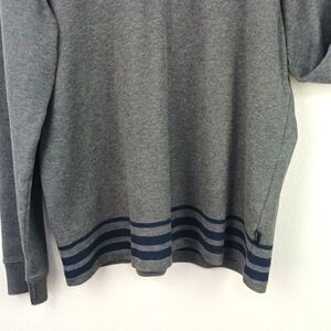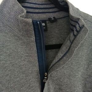 Boss Men's quarter zip mock neck long-sleeve gray/navy strips knit sweater sz L