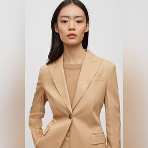 A slim-fitting jacket in a stretch blend with cotton and a gloss finish by BOSS Womenswear.