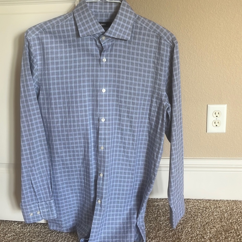 Long sleeve boss by Hugo Boss button down. Size 16R, sleeves 32/33. Very good condition