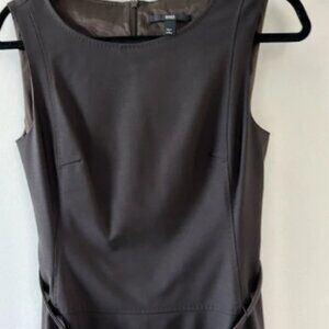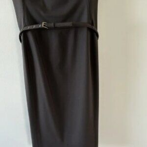 Beautiful dark brown sheath dress with round neck,sleeveless, slim belt, lined, & zip closure in the back. This dress is in great condition & made of quality material. 96% virgin wool & 4 % spandex. Great for business attire or a cocky party.