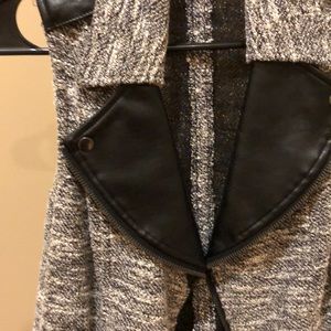 Jacket with contrast materials. Pair with almost any top for a bossy look!