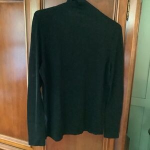 Boss merino wool turtleneck size XL. Superfine merino wool. Gold button trim on sleeves. Can be hand washes or dry cleaned. Black.