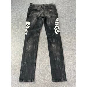 Bossi Men’s SPRP Leather Skull Black Faded Skinny Fitted Denim Jeans Size 34