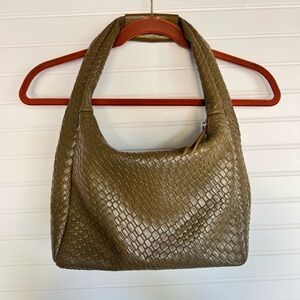Bostanten KWELI Croc Structured Curved Hobo Handbag Olive Green