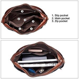 Bostanten LG Black Leather Shoulder Tote Bag Purse Zip Pockets Adjustable Strap