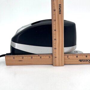 The Bostitch Electric Stapler model 20SUITE in black and silver is designed for heavy-duty stapling tasks. With a 120V, 60Hz, and 2.5A rating, it ensures reliable performance in high-demand environments like offices or educational institutions. Its sturdy build and efficient operation make it a valuable tool for streamlining paperwork tasks.