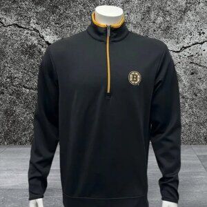 Boston Bruins NHL 1/4 Zip Pull Over Black Yellow Embroidered Jacket Antigua MD