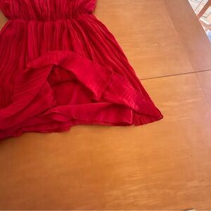 Boston Proper 12 red accordion plated spaghetti strap mini dress