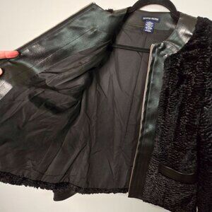 Boston Proper 4 Leather Trim Faux Fur Jacket Black Quiet Luxury Chic Edgy
