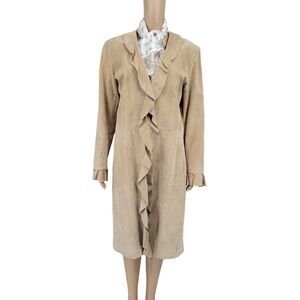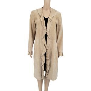 Boston Proper 90s Y2k Tan Suede Leather Trench Long Duster Jacket Boho Western