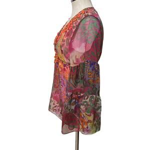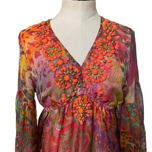 Boston Proper Beaded Long Sleeve Boho Blouse in Multicolor Leopard Print Small