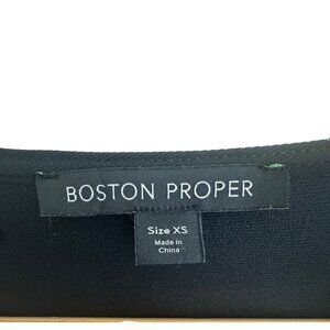 Boston Proper Beyond Travel Black Ivory Asymmetric Neckline Top Shirt Size XS