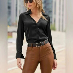 Boston Proper Jet black, long sleeve, button down blouse, tunic in NEW condition. No holes or stains. Size: L Has never been worn! **Styled on a size 4 mannequin*** Models wearing similar blouse***. {Necklace sold separately}