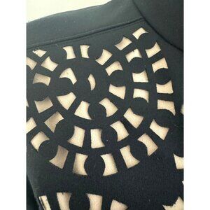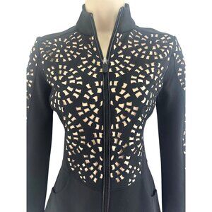 Boston Proper Black Laser Cut Long Sleeve Zip Jacket w/Pockets Sz XS Athleisure