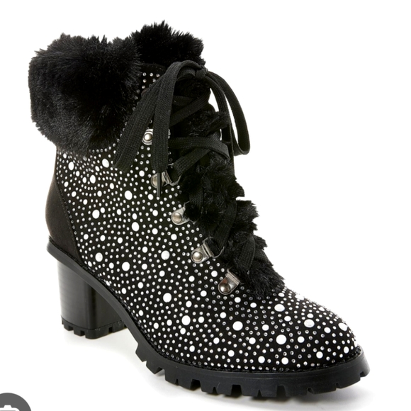 Boston Proper Black Rhinestone Fur Booties