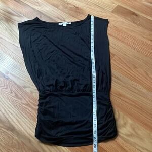 This is a previously owned Boston Proper black ruched slimming tunic in size XS. It is in great condition and ready to wear. The ruched detailing is very flattering and slimming.