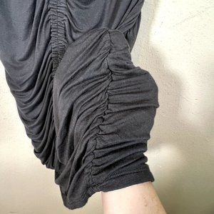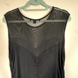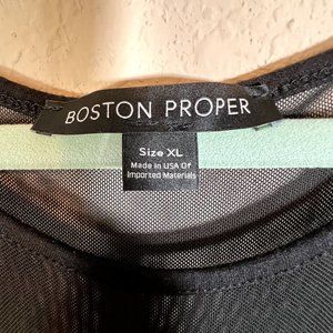 Boston Proper Black Ruched XL Dress Bodycon Sheer Collar Stretch Double Lined