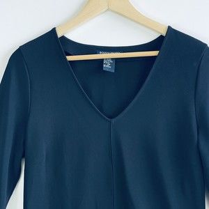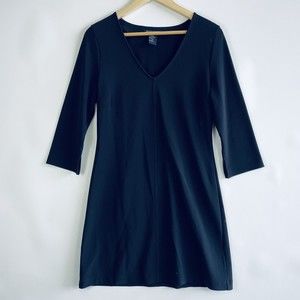 Boston Proper Black Stretch 1/2 Sleeve Knee Dress A-Line Womens Sz Medium Petite