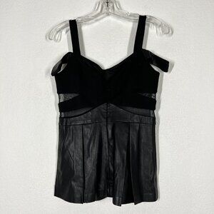 Boston Proper black tank top featuring faux leather paneling, mesh cutout accents, and a flattering fit-and-flare silhouette. Size 2.