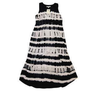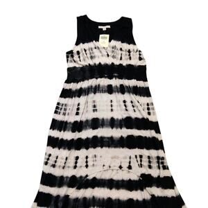 Boston Proper Black Tie Dye Hi Low Midi Dress Size XL NWT Stripe Jersey Knit