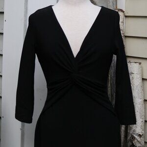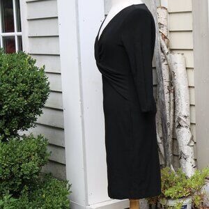 Boston Proper Black V-Neck Twist Waist Long Sleeve Knit Sheath Dress Sz 8