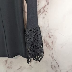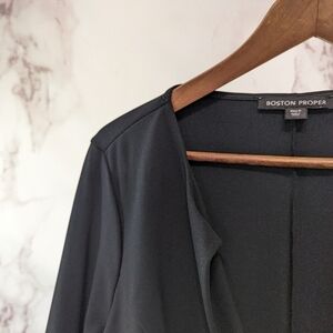Boston Proper Blazer Womens Small Black Lace Crochet Sleeve Jacket Office