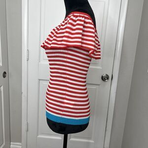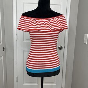Boston Proper Blouse Women's Small Off The Shoulder Ruffle Stripped Knit Top