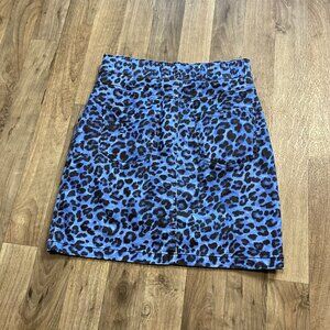 Boston Proper Blue Cheetah Print Denim Mini Skort Size 6
