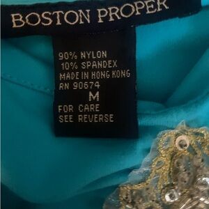 Elevate your style with this stunning blue top from Boston Proper. Featuring intricate embellishments, this top is perfect for any occasion. Pair it with your favorite jeans or skirt for a chic look.