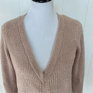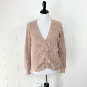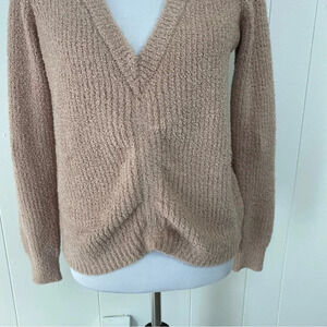 Boston Proper Blush Beige Sweater Textured Ruched V Neck Knit Long Sleeve XXS