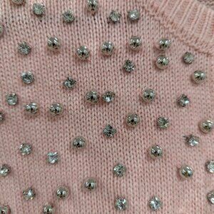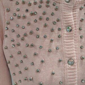 Never worn - almost new without tags beautiful sweater in blush pink from Boston Proper, sz XXS. Has gorgeous bold rhinestone buttons in the front with rhinestone and silver pearls all over in the front. Smoke free home.