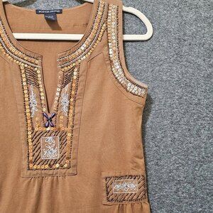 Boston Proper Boho Dress Womens Size XS Tan Sequined Split Neck Sleeveless