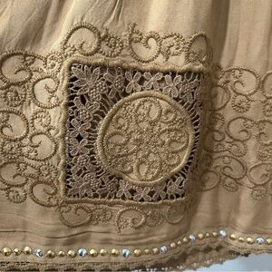 Boston Proper Boho Embroidered Top Or Mini Dress SZ Medium Camel Beaded Is New Without Tags.