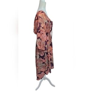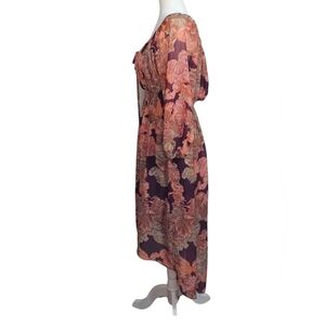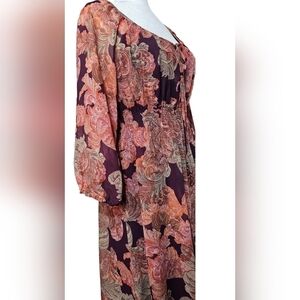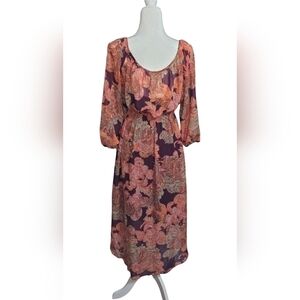 Boston Proper Boho High Low Purple Multicolor Ballon 3/4 Sleeve Dress w/ Slip