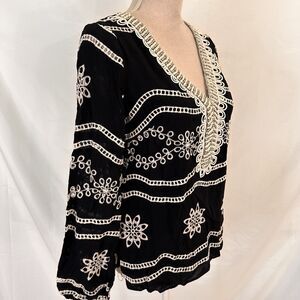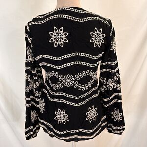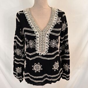 Boston Proper Boho Tunic EYELET EMBELLISHED TOP Embroidered XS Black White