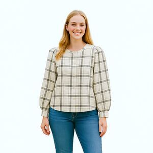 Boston proper smocked neck off the shoulder (or not) blouse with bold floral beautiful embroidery