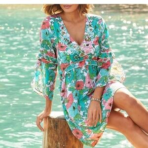 Boston Proper Bouquet Of Summer Embellished Peasant Dress.