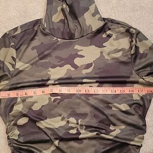 Stylish camouflage turtleneck top for women. Perfect for a chic, casual look . perfect condition no flaws worn once then hung dry. silky feeling material. sz med