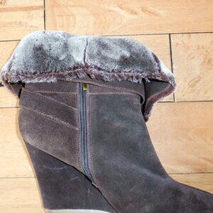 Boston Proper Chocolate Brown Suede Cozy Fur Lined Wedge Ankle Boots 9 1/2