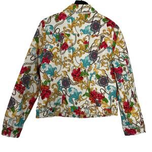 Boston Proper Colorful Medallion Chain Print Denim Jacket Size M